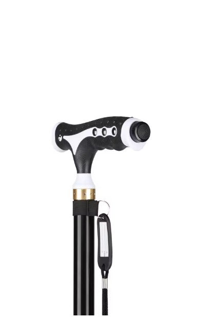 Deze compacte wandelstok is voorzien van verlichting.